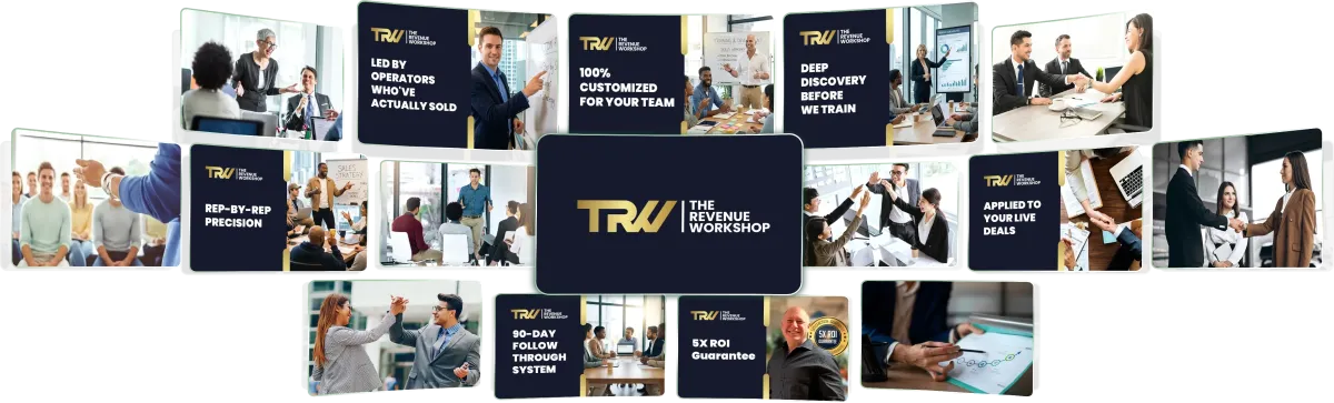 Most sales trainers show up, entertain the room for a day, deliver the same generic content to every rep, and leave with zero follow-up or accountability. The Revenue Workshop runs a full intake and diagnostic process before training, customizes every workshop to your specific team and pipeline, addresses individual seller gaps rep by rep, and stays involved for 90 days after training to ensure measurable lift. No other program offers that level of precision and follow-through.
